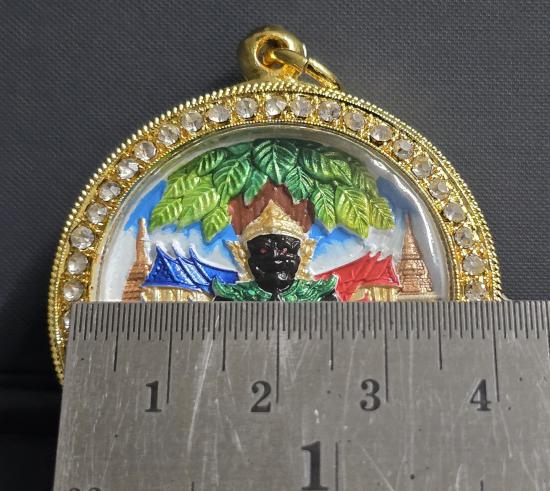 หนุมาน "สัมฤทธิ์ผล ดลบันดาน ประทานทรัพย์" วัดสนามชัย จ.อ่างทอง เพ้นลายหน้า-หลัง มาสเตอร์พีช(แบบที่ 4) ใส่ตลับอิตาลีชุบทองฝังเพชร สวยมากครับ หมายเลข ๓๐....พร้อมกล่อง พระสวยมาก องค์ใหญ่ขนาด 3.5 cm.