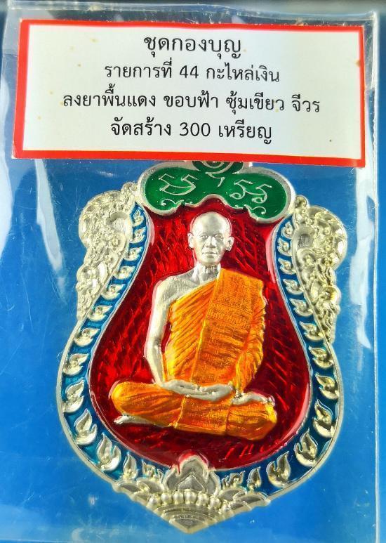 1200-เคาะเดียว เหรียญเสมาอุดมทรัพย์ พระอาจารย์ต้อม วัดท่าสะแบง ชุดกองบุญ เนื้อกะไหล่เงิน ลงยาแดง ขอบฟ้า ชุ้มเขียว ลงยาจีวร เลข๒๗๙ เสมาใหญ่พิมพ์นิยม