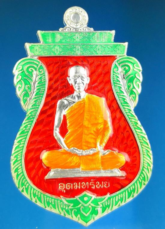 400-เคาะเดียวเหรียญเสมา รุ่นอุดมทรัพย์ ลังลุ้น พระอาจารย์ต้อม วัดท่าสะแบง ร้อยเอ็ด เนื้อชุบเงินลงยาแดง ลงยาจีวร ลงยาขอบ เลข๒๗๓