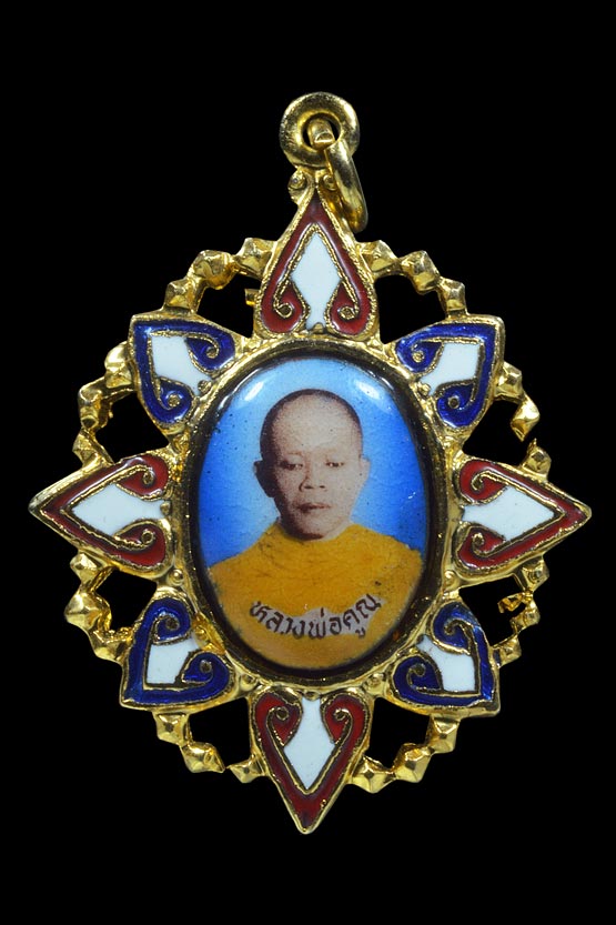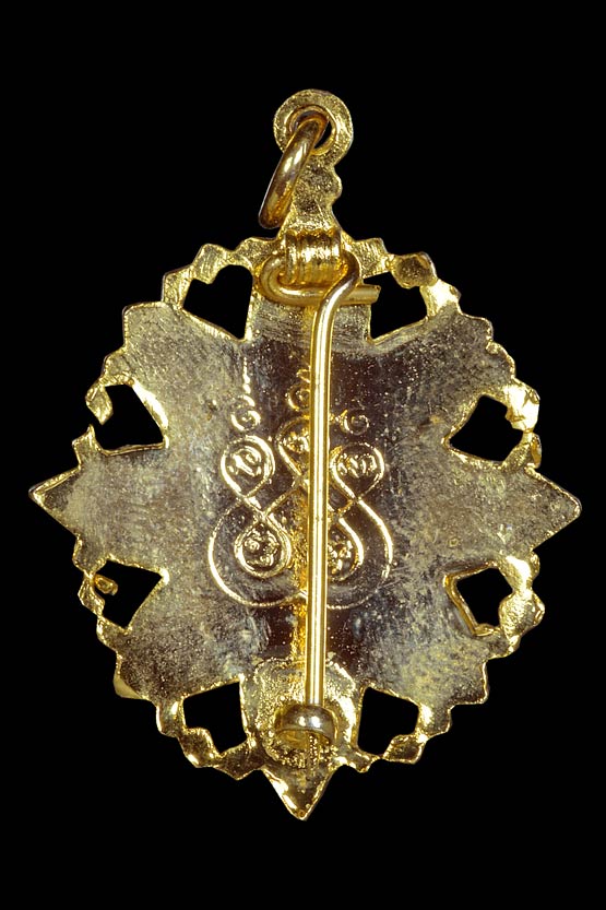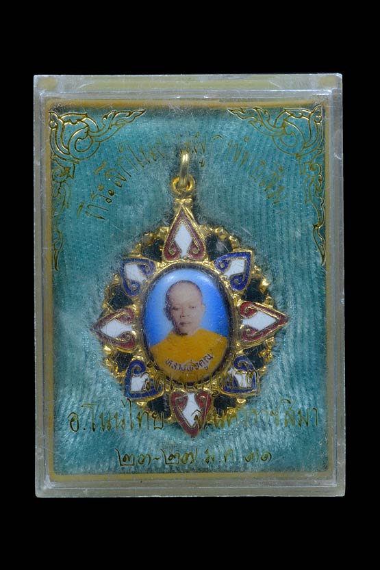 ล็อกเก็ตเข็มกลัดครึ่งองค์หน้าหนุ่ม ที่ระลึกในงานผูกพันธสีมา วัดเจริญพรต ( ตัวถังโลหะลายฉลุกะไหล่ทอง ลงยาธงชาติ ) พ.ศ.2531 ( กล่องเดิม ) ** 4 **