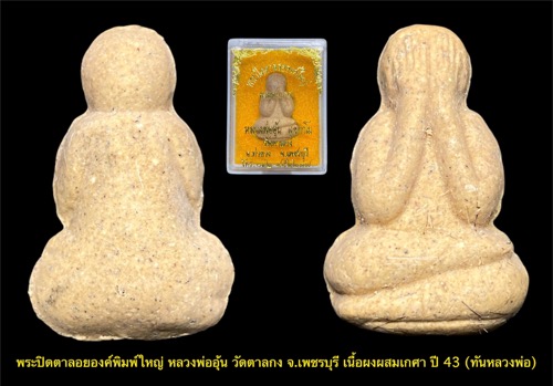 พระปิดตาลอยองค์พิมพ์ใหญ่ หลวงพ่ออุ้น วัดตาลกง เพชรบุรี เนื้อ ผงผสมเกศา เคาะเดียว