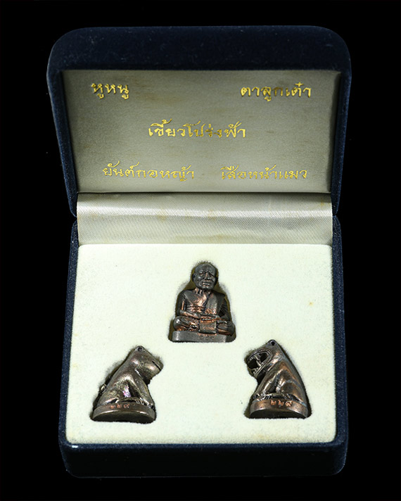 สำหรับท่านๆที่เคยแต่ได้ยินเนื้อนวโลหะกลับดำ แต่ไม่เคยเห็น รุ่นนี้ องค์นี้ เหมาะกับการสะสมและศึกษามากๆครับ มาพร้อมกล่องกำมะหยี่สีน้ำเงิน(บอกก่อนว่าหน้ากล่องขาดนิดนึงนะครับ)และมีเสือโปร่งฟ้าพิมพ์ย้อนยุค 2 องค์ทั้งพิมพ์อ้าปากและหุบปาก หมายเลข 229 ครับ ตรงกันหมดครับ