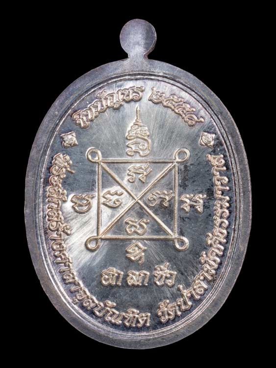 เหรียญรูปไข่ รุ่นเจริญพรชินบัญชร หลวงปู่ฮก วัดป่าสามัคคีธรรม วาส จ.ชลบุรี พ.ศ.2558 เนื้อเงินหน้ากากทองคำ ตอก 2 โค๊ต ตอกเ ล ข พร้อมกล่องกำมะหยี่เดิม