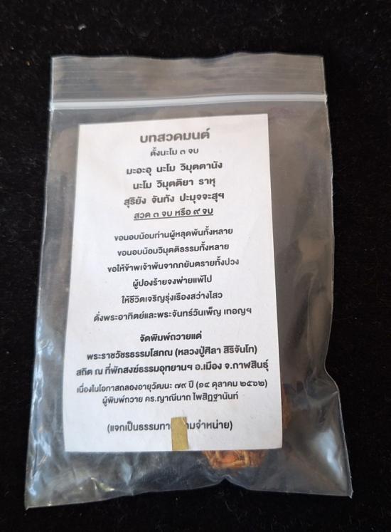 เบี้ยแก้ หุ้มจีวร ถักเชือก หลวงปู่ศิลา วัดโพธิ์ศรีสะอาด มีแผ่นเลขกำกับ ฝังตะกรุดทองเหลือง พร้อมใบคาถา ปี2567