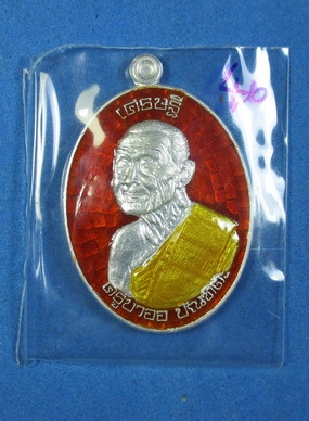 เหรียญครูบาออ ปัณฑิต๊ะ รุ่นเศรษฐี เนื้อเงินลงยา เลข 46 ปี 2558 สวยครับ