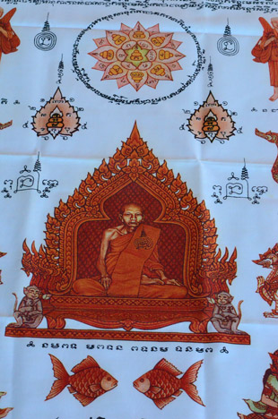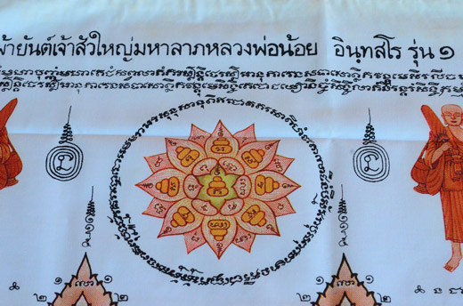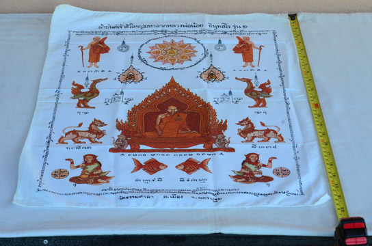 ผ้ายันต์ เจ้าสัวใหญ่ ปลาตะเพียน มหาลาภ หลวงพ่อน้อย อินุทสโร รุ่น ๑ วัดธรรมศาลา อ.เมือง จ.นครปฐม ผืนใหญ่ ครับ