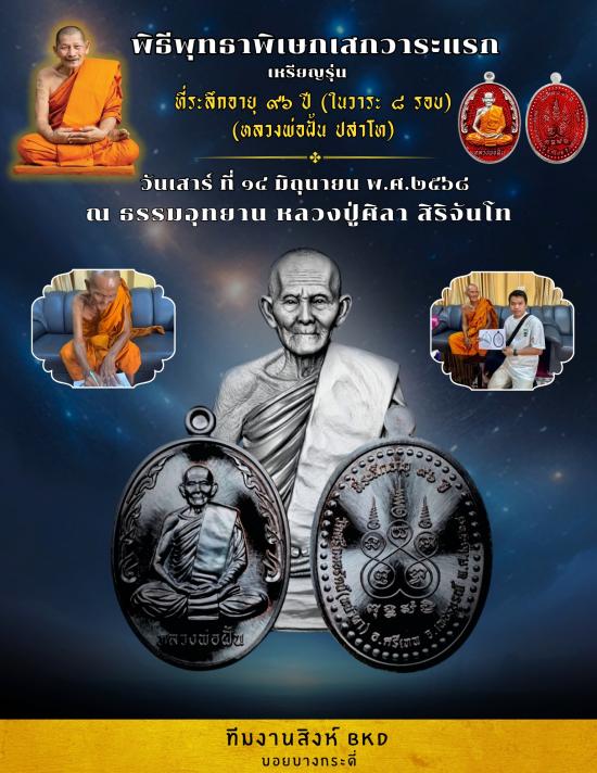 หลวงปู่ฝั้น ปสาโท วัดศรีถมอรัตน์(หน้าผา) เพชรบูรณ์ ท่านเป็นศิษย์ หลวงพ่อเดิม (สามเณรเลี้ยงช้างหลวงพ่อเดิม) หลวงพ่อกวย หลวงพ่อทบ ท่านเดินธุดงวัตร ทั่วประเทศไทย 3 รอบรุ่น ที่ระลึกอายุครบ 8 รอบ แพคคู่ 2 องค์