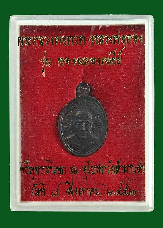 หลวงพ่อทวด หลวงพ่อทอง วัดสำเภาเชย รุ่นแซยิด 93 เหรียญพุทธซ้อน พิมพ์กรรมการใหญ่ เนื้อเงินลงยา พื้นน้ำเงิน จีวรเหลือง
