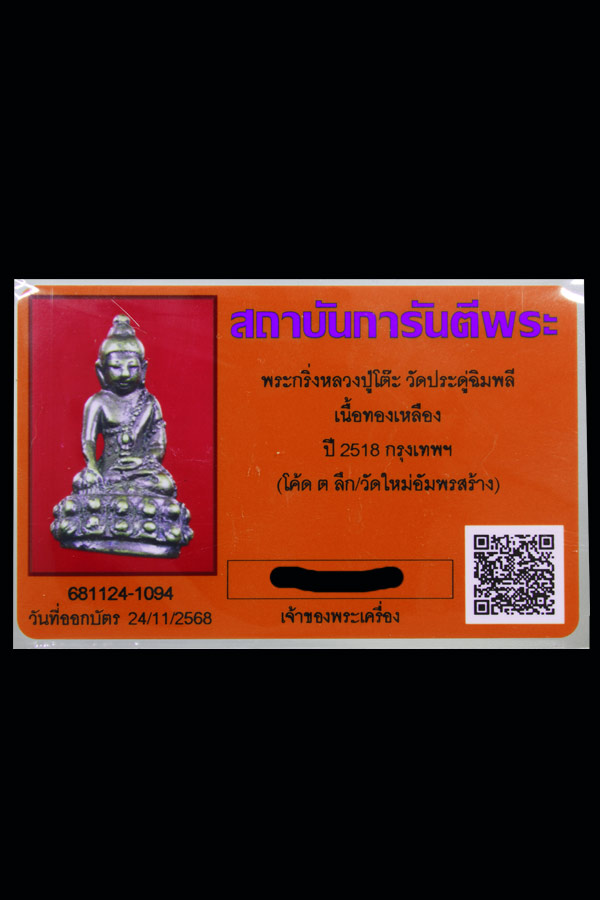 กริ่งหลวงปู่โต๊ะ ปี 18 ออกวัดใหม่อัมพร สวย พร้อมบัตร ครับ