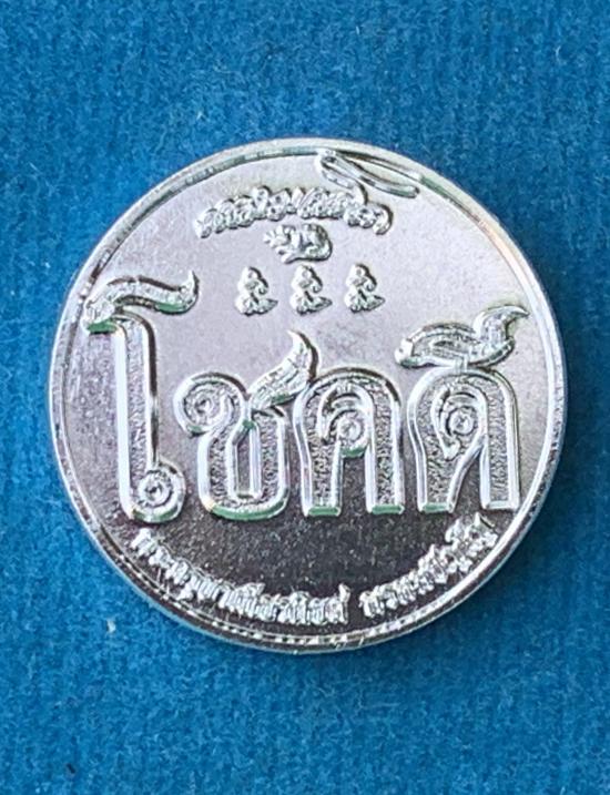 เหรียญโชคดี หลังมังกร ครูบาเกียรติยศ พรหมปัญโญ วัดบ้านแก่นไชย ปี 2568 โชคดีทุกเวลารวยเงินตราทุกนาที เนื้อกะไหล่เงิน หมายเลข 154