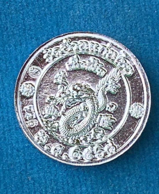 เหรียญโชคดี หลังมังกร ครูบาเกียรติยศ พรหมปัญโญ วัดบ้านแก่นไชย ปี 2568 โชคดีทุกเวลารวยเงินตราทุกนาที เนื้อกะไหล่เงิน หมายเลข 226