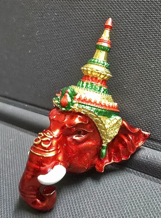 เศียรหล่อ นวะโลหะ ลงยาแดง เพ้นเครื่องทรงชฏา พระพิฆเนศ "โอมศรีคเณ" วัดท้ายน้ำ จ.พิจิตร สวยมากครับ