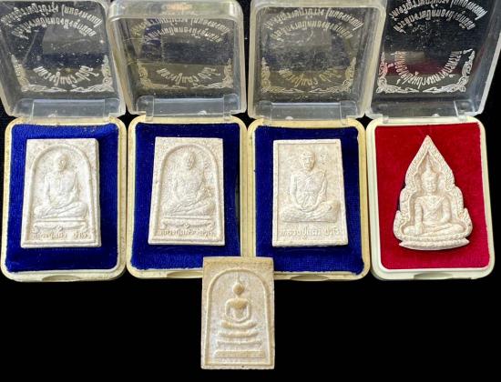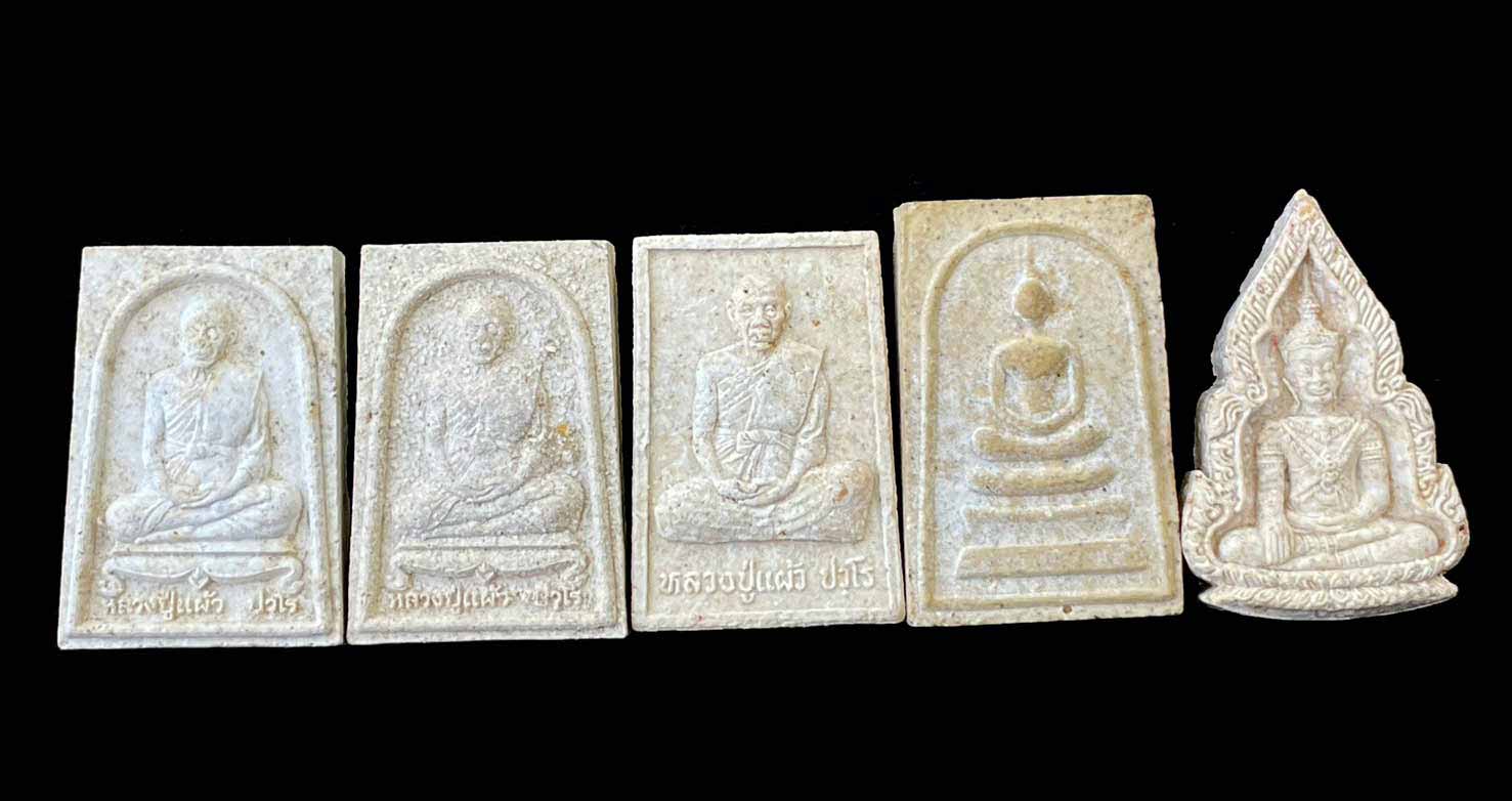 วัดใจ 5 องค์ พระผงรูปเหมือน หลวงปู่แผ้ว ที่ระลึกงานปิดทองฝังลูกนิมิต วัดหนองพงนก จ.นครปฐม ปี 2547