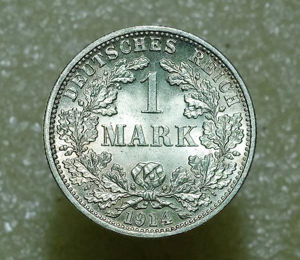 เหรียญกษาปณ์จักรวรรดิเยอรมัน - กษัตริย์วิลเฮ็ล์มที่ 2 (Wilhelm II) - 1 REICH MARK ค.ศ.1914 mint F - เนื้อเงิน UNC