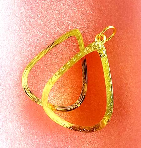 กรอบทองคำแท้ยกซุ้มสิงห์ ใส่พระผงรูปเหมือนใบโพธิ์ หลวงปู่โต๊ะ จอใน2.1+2.7ซม.น้ำหนัก 1.14กรัม