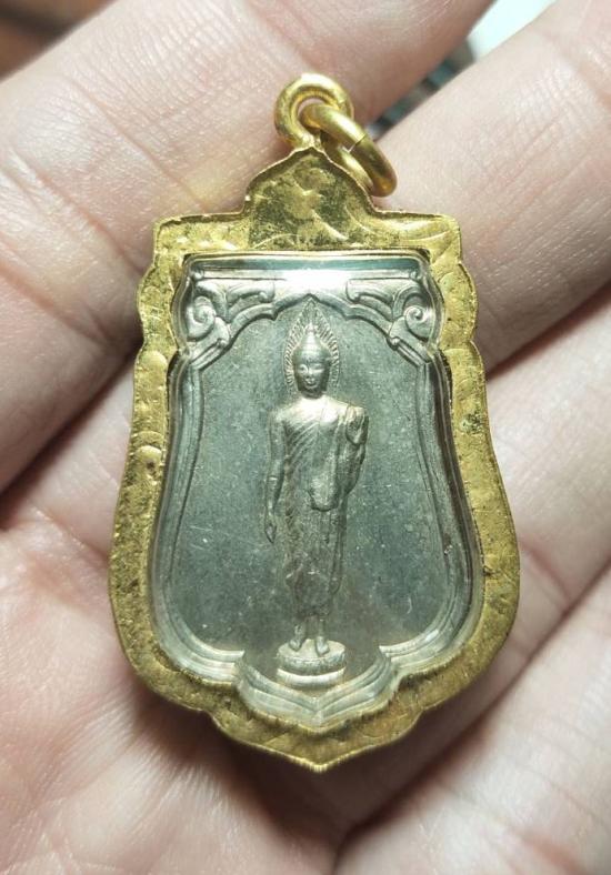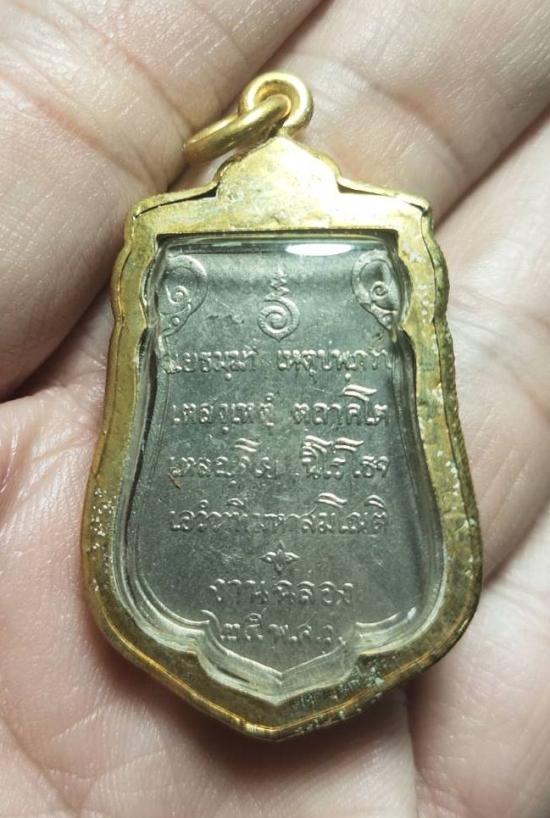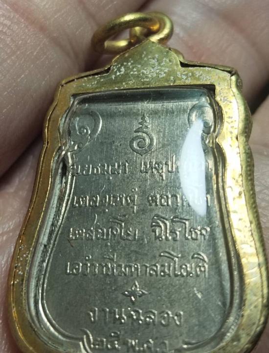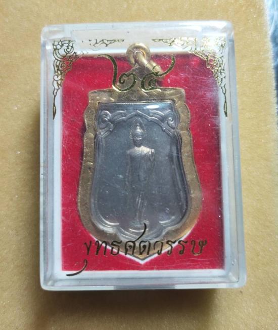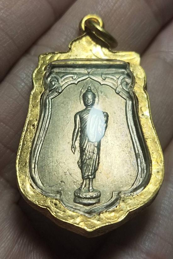 วัดใจเคาะแรก... เหรียญเสมา 25 พุทธศตวรรษ ปี 2500 เนื้ออัลปาก้า บล็อกแขนโต(ยันต์ห่าง) เลี่ยมทองไมครอนเดิมๆ พร้อมกล่องเดิม
