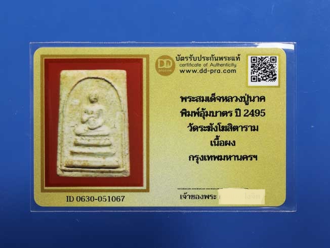พระสมเด็จหลวงปู่นาค วัดระฆัง พิมพ์จกบาตร ปี 2495 วัดระฆังฯ สวยเดิม + บัตร