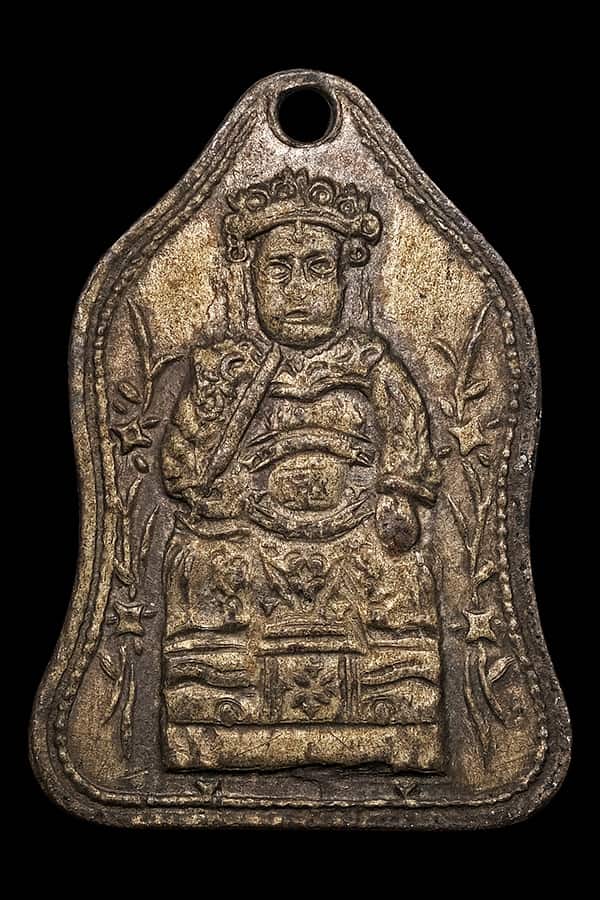 เคาะเดียว เหรียญเจ้าแม่ทับทิม (หม่าจ้อ) จ.นครราชสีมา (โคราช) ปี 2514 ที่ระลึกในพิธีลุยไฟ เนื้อกะไหล่ทอง |