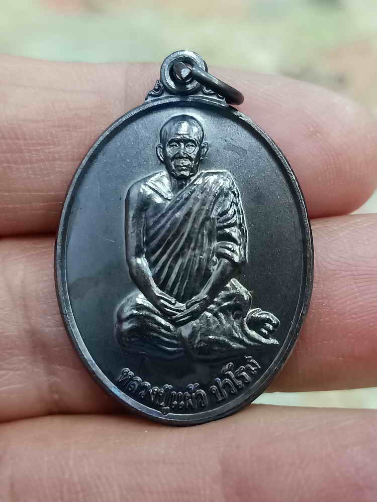 วัดใจ 100 เหรียญรุ่นสิงห์กำแพงแสน หลวงปู่แผ้ว ปวโร วัดรางหมัน ออกวัดทุ่งกระพังโหม จ.นครปฐม 2554 ทองแดงรมดำ กล่องเดิม