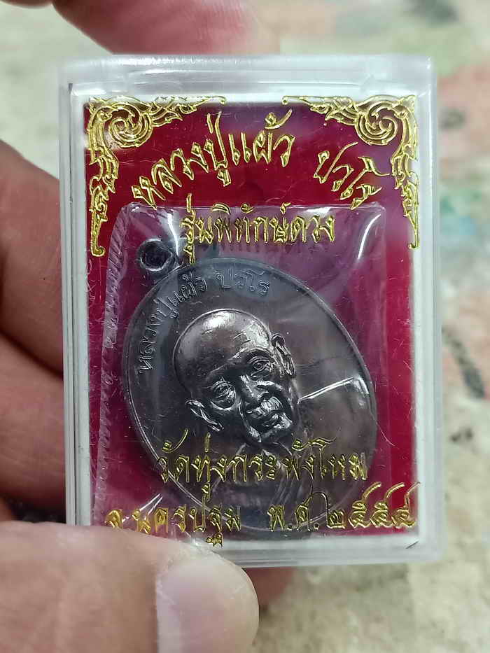 วัดใจ 100 เหรียญรุ่นพิทักษ์ดวง หลวงปู่แผ้ว ปวโร วัดรางหมัน ออกวัดทุ่งกระพังโหม จ.นครปฐม 2554 ทองแดงรมดำ กล่องเดิม