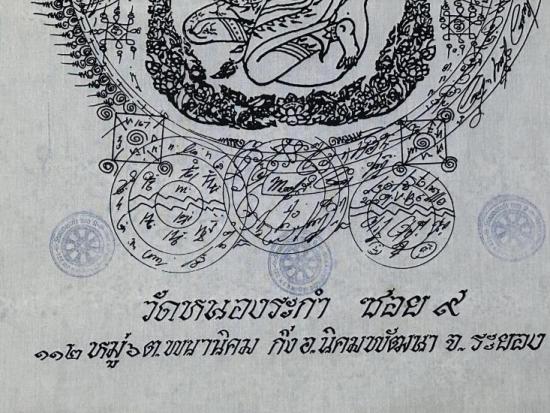 จัดไป 3 ผืน....ผ้ายันต์พระพุทธธรรมจักรทิพย์ญาณไตรโลก วัดหนองระกำ อาจารย์หม่อมเขียนออกแบบยันต์ หลวงปู่ละมัยปลุกเสก ขนาด 112x47 ซ.ม. ผืนใหญ่ ชุดที่ 5 |