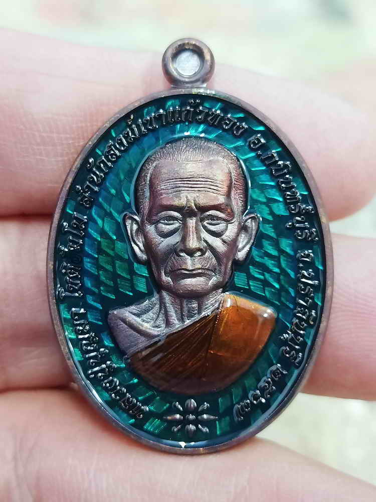 วัดใจ 100 เหรียญบรมครูหนุนดวง หลวงปู่บุญมา สำนักสงฆ์เขาแก้วทอง จ.ปราจีนบุรี 2567 ทองแดงมันปู ลงยาเขียว จีวร หน้ากากหลัง หมายเลข 50 กล่องเดิม
