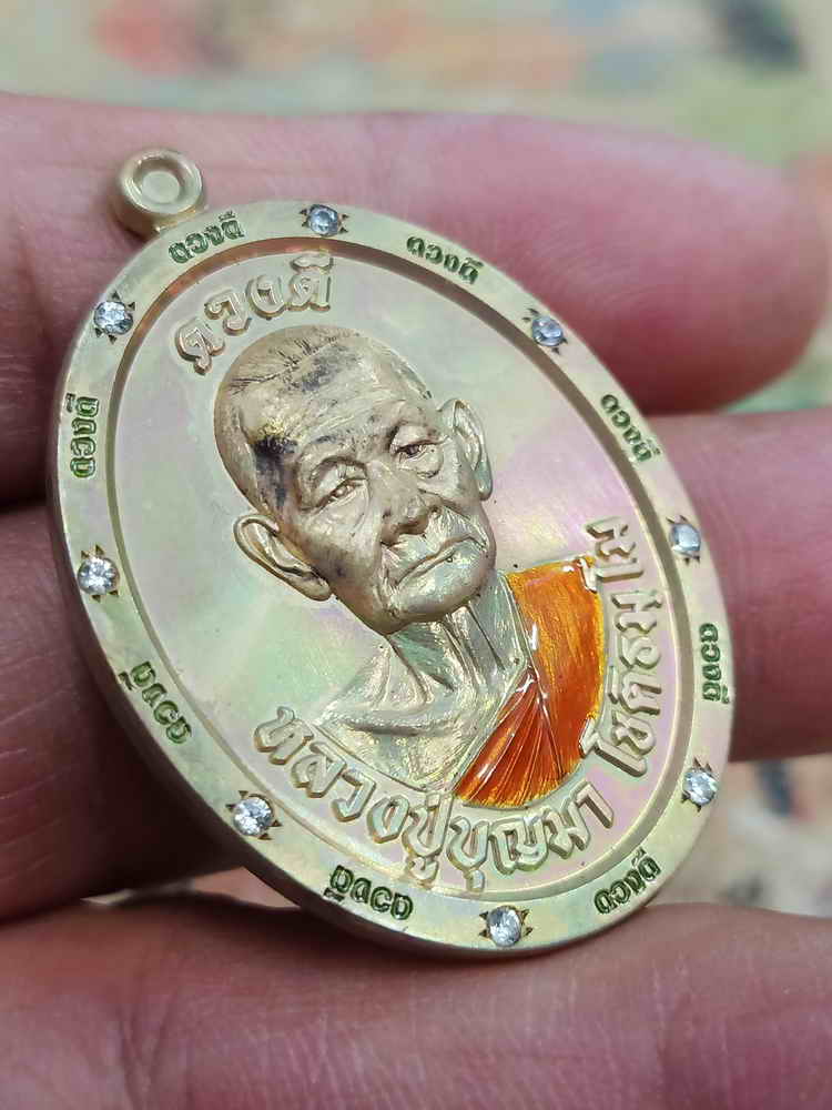 วัดใจ 100 เหรียญขอบดวงดี หลวงปู่บุญมา สำนักสงฆ์เขาแก้วทอง จ.ปราจีนบุรี 2567 ชนวน ขอบฝังเพชร ลงยา หมายเลข 12 สร้าง 39 กล่องเดิม