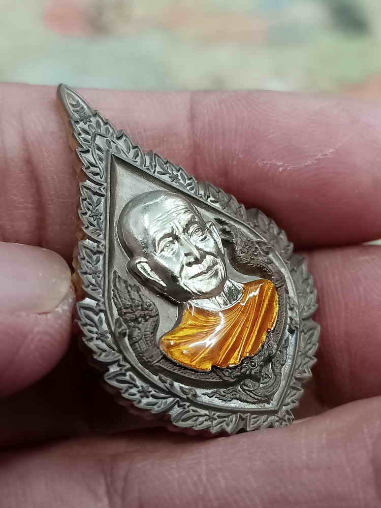 วัดใจ 100 เหรียญพัดยศ เลื่อนสมณศักดฺื หลวงปู่จื่อ วัดเขาตาเงาะอุดมพร จ.ชัยภูมิ เนื้อชนวน หน้ากากอัลปาก้า ลงยา หมายเลข 504 กล่องเดิม***ยุคต้นต้องมี