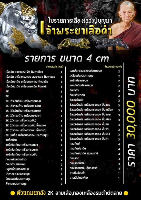 ชื่อพระเครื่อง รูปหล่อเสือ รุ่น เจ้าพระยาเสือดำ หลวงปู่บุญมา โชติธมโม สำนักสงฆ์เขาแก้วทอง จ.ปราจีนบุรี ปี 2565 ขนาด 4 ซม เนื้อลายเสือโคร่งหิมะ เลขสวย 27 สวยมาก กล่องเดิมครับ