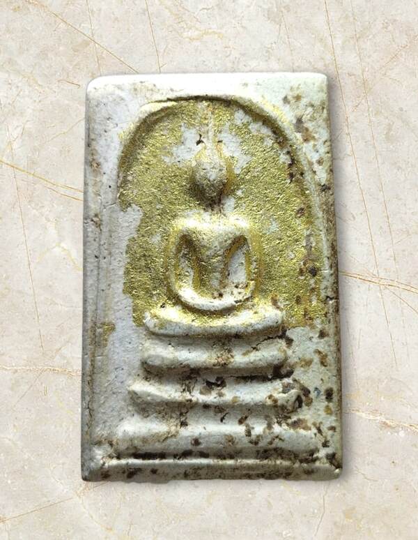 สมเด็จวัดประสาทบุญญาวาส พิมพ์สามชั้น เนื้อขาว ปี 2506 ปิดทองเก่า มีคราบปลวก เคาะเดียว
