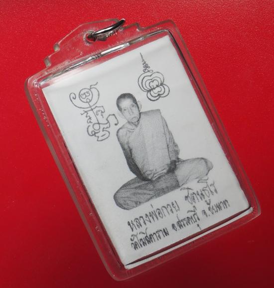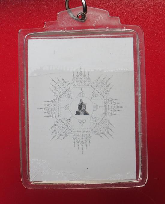 รูปถ่ายหลวงพ่อกวยเต็มองค์ ปี 2556 ด้านหลังยันต์ 8 ทิศ |