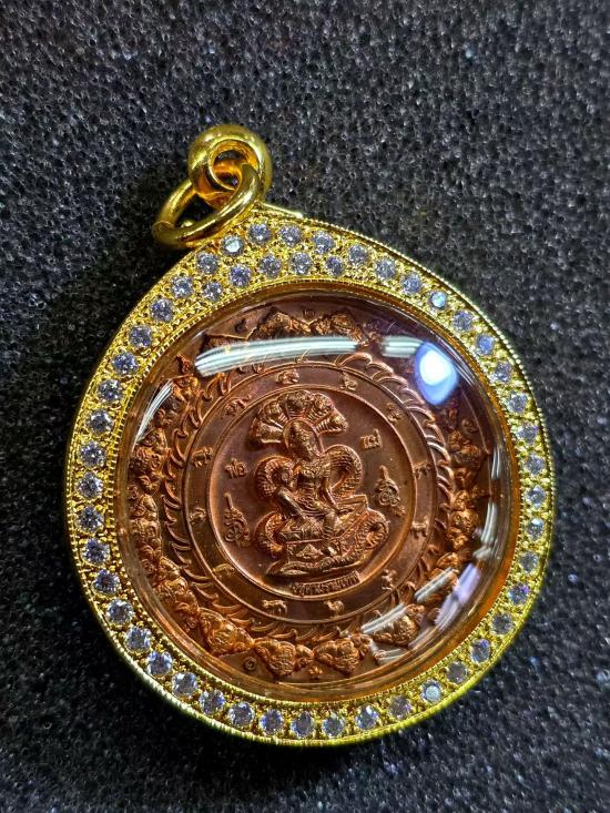 เหรียญจตุคามรามเทพหลวงพ่อโชติ รุ่นคันฉ่องผ่าตะวันเหนือดวง เนื้อ ทองเเดง พ.ศ. 2550 พิเศษมีจาร