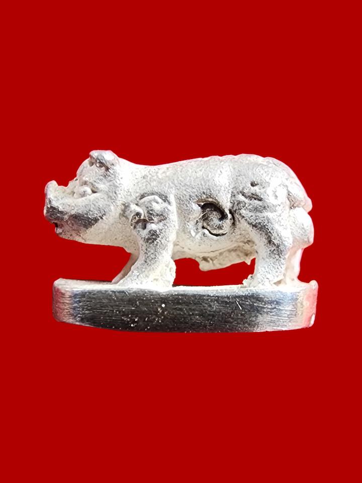 ลักษณะและเนื้อวัตถุมงคล: เป็นหมูขนาดเล็กจิ๋ว เนื้อเงินแท้ และมักจะพบเห็นในสภาพสวยเดิม องค์จริงจะมีลักษณะอ้วนกว่าของเลียนแบบในตลาด |