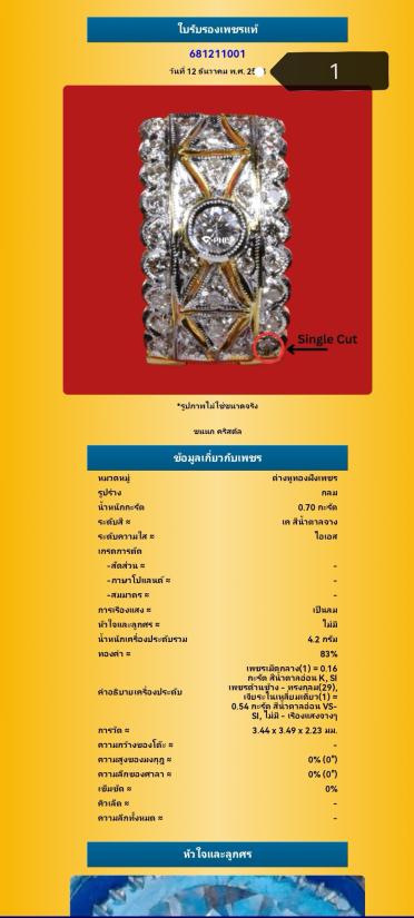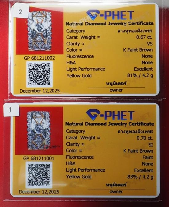 ผลใบรับรองตางหูทองคำฝั่งเพขรชิ้นที่2ครับ