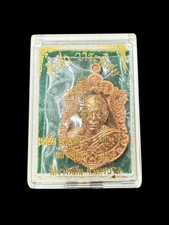 เหรียญเจ้าสัว 8 รอบ 96 ปี หลวงปู่แผ้ว วัดรางหมัน จ.นครปฐม เนื้อทองแดง ผิวเดิม กล่องเดิม