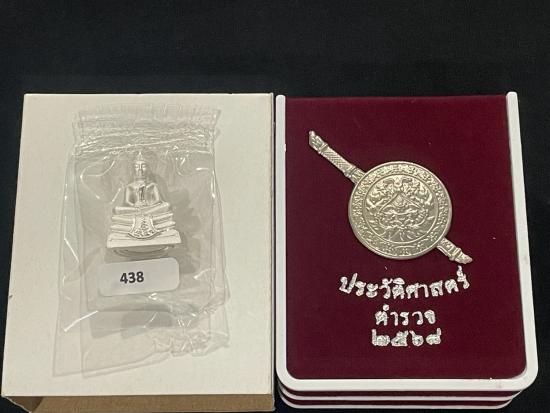 กริ่งลอยองค์ หลวงพ่อโสธร รุ่นประวัติศาสตร์ตำรวจ 2568 เนื้อเงินพ่นทรายประกายเพชร หมายเลข 438 เส้นคอแน่นๆ พร้อมกล่องกำมะหยี่และกล่องกระดาษเดิม