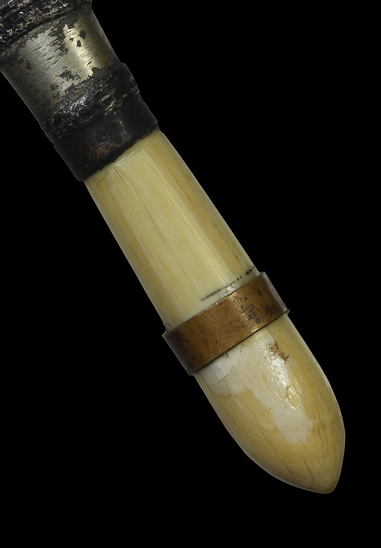 วัดใจ**เครื่องราง มีดหมอสาริกา*{ ด้ามงา+ฝักงาเนื้องาแกะ+มีรอยจาร }*รัดด้วยแหมเงินเก่า ยาว 3.5นิ้ว สภาพสมบูรณ์....เดิมๆครับ