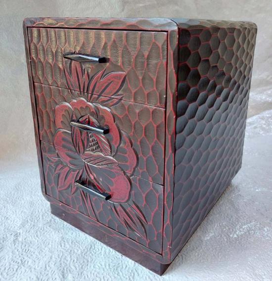 ***วัดใจ***กล่องไม้วินเทจญี่ปุ่นคามาคุระโบริ งานฝีมือเก่าแกะลายญี่ปุ่น 3 ลิ้นชัก สามารถวางพระบูชา 5 นิ้วได้