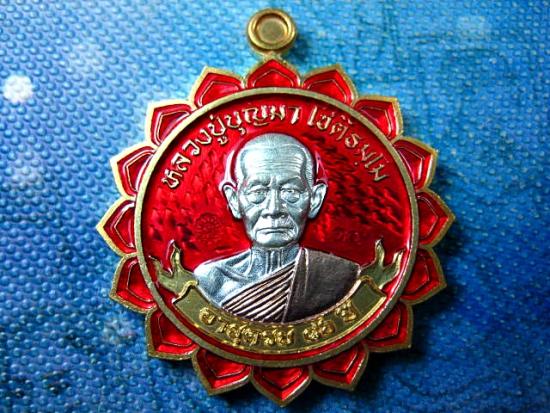 เหรียญรุ่น โคตรรวย หลวงปู่บุญมา โชติธัมโม เนื้อ 3K ลงยาขุ้ยพื้นสีแดง พร้อมกล่องเดิมครับ (---A72---)
