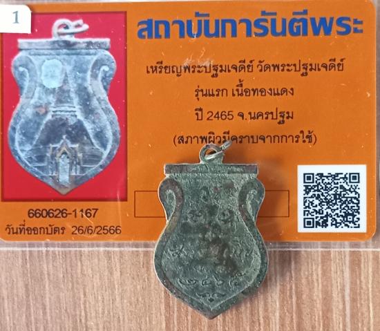 เคาะเดียวแดง+++เหรียญพระปฐมเจดีย์ วัดพระปฐมเจดีย์ รุ่นแรก เนื้อทองแดง ปี2465 จ.นครปฐม พร้อมบัตรรับรองพระแท้ระบุมีคราบจากการเก็บ