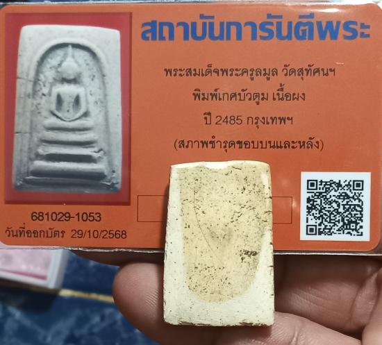 เคาะเดียวแดง++พระสมเด็จพระครูลมูล วัดสุทัศนฯ พิมพ์เกศบัวตูม เนื้อผง ปี 2485 กรุงเทพฯ (มาพร้อมบัตรสภาพชำรุดขอบบนและหลัง)