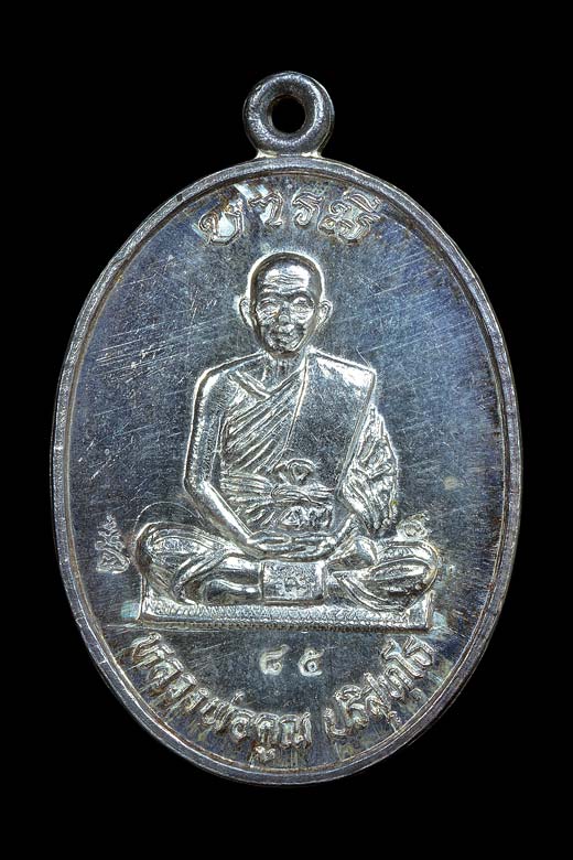 เหรียญ รุ่น สร้างบารมี 71 ( เนื้อเงิน ) หมายเลข 85 พ.ศ.2536 ( กล่องเดิม , ตอกโค้ดในชุดทองคำ )