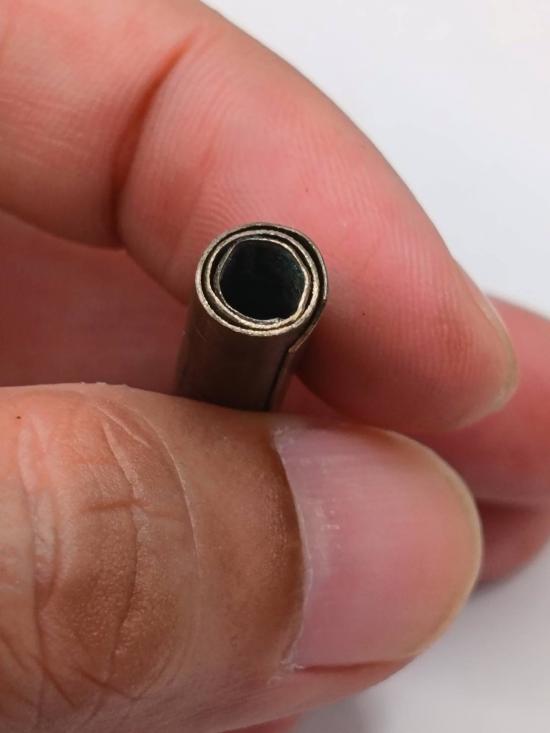 เคาะแรกแดง ตะกรุดมีรอยจารคำว่า คงกพัน กับมีรอยจารอักขระ ไม่ทราบที่ ไม่ทราบเกจิ |