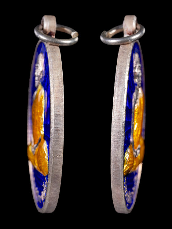 เหรียญรูปไข่ หลวงปู่ลือ ปุญโญ วัดป่านาทาม จ.มุกดาหาร อายุ 88 ปี พ.ศ.2540 เนื้อเงินลงยาสีน้ำเงิน ตอกโค๊ต ตอกเลข พร้อมกล่ องเดิม !!