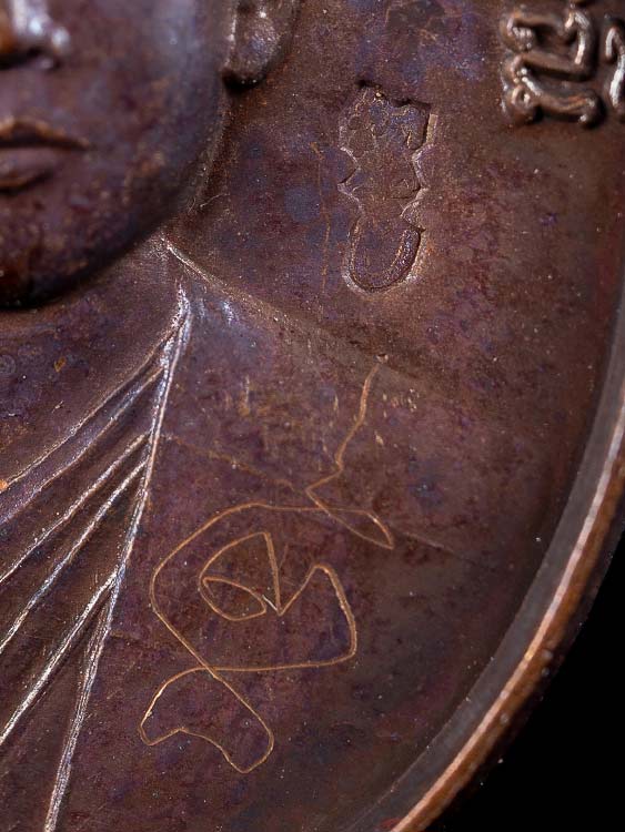 เหรียญลูกท้อจีนรุ่นแรก พระอาจารอิฏฐ์ วัดจุฬามณี จ.สมุทรสงครา ม พ.ศ.2548 เนื้อทองแดง ตอกโค๊ต จารยันต์ พร้อมกล่อง !!