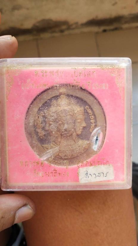 พระพรหมเปิดโลก หลวงพ่อชำนาญ ปี2549วัดบางกุฎีทอง จ.ปทุมธานี ( พิธีเป่ายันต์พระพรหมสี่หน้าครั้งที่ 6 ปี 2549 ) เนื้อผงว่านปัดทองหลังฝังเม็ดข้าวหิน สภาพสวยกริ๊บๆ