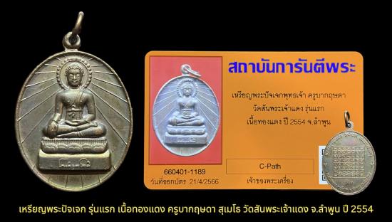 เหรียญพระปัจเจกพระพุทธเจ้า ครูบากฤษดา สุเมโธ วัดสันพระเจ้าแดง จ. ลำพูน เนื้อทองแดง รุ่นแรก ปี2554 เคาะเดียว