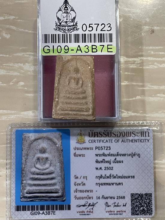 (เคาะแดง4500) +บัตรสมาคม สมเด็จพิมพ์ใหญ่ หลวงปู่ลำภูลงกรุ เม็ดบางขุนพรหม
