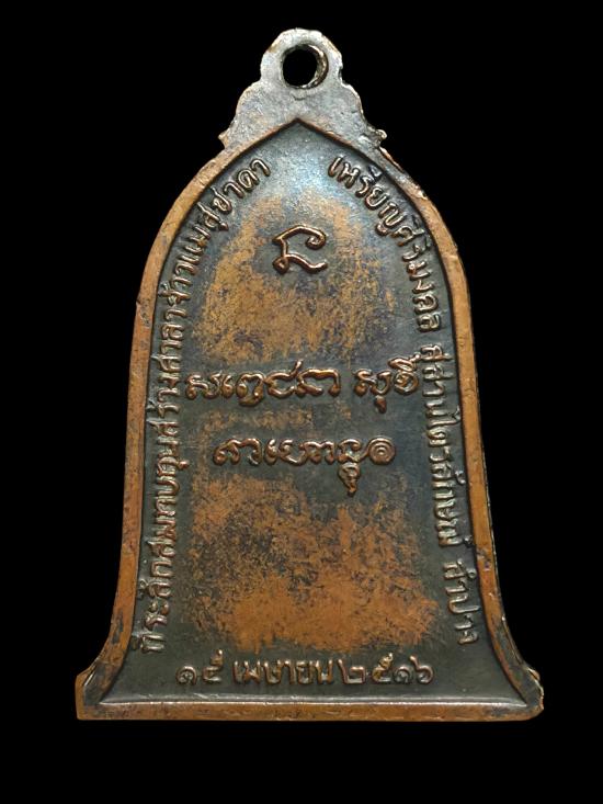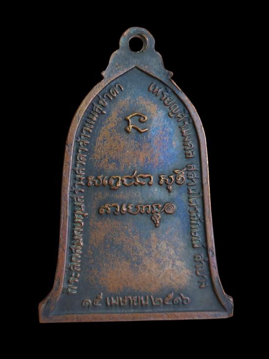 เหรียญระฆัง หลวงพ่อเกษม เขมโก ปี 2516 เนื้อทองแดงรมดำ