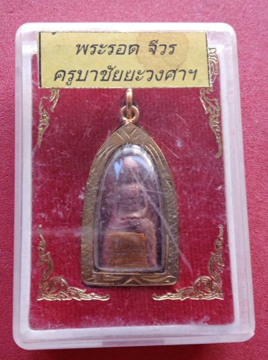 พระรอดแดง พร้อมจีวร ครูบาชัยวงศาพัฒนา วัดพระพุทธบาทห้วยต้ม ศิษย์สายตรงครูบาเจ้าศรีวิไชย ครูบาขาวปี เลี่ยมทองไมครอนจากวัด (ไม่ทราบปี)